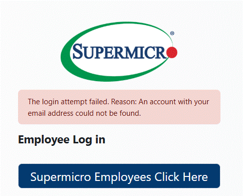 12. I tried to log into the Education Portal with my Supermicro credentials but received the following error message: "The login attempt failed. Reason: An account with your email address could not be found." What should I do?